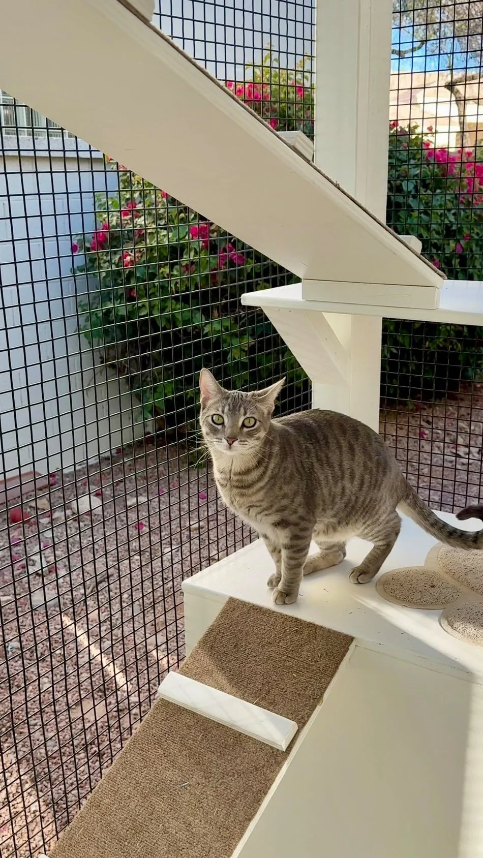 My cats and I love the new catio! Now they have a safe space without being threatened. I recommend Tailored Catios.