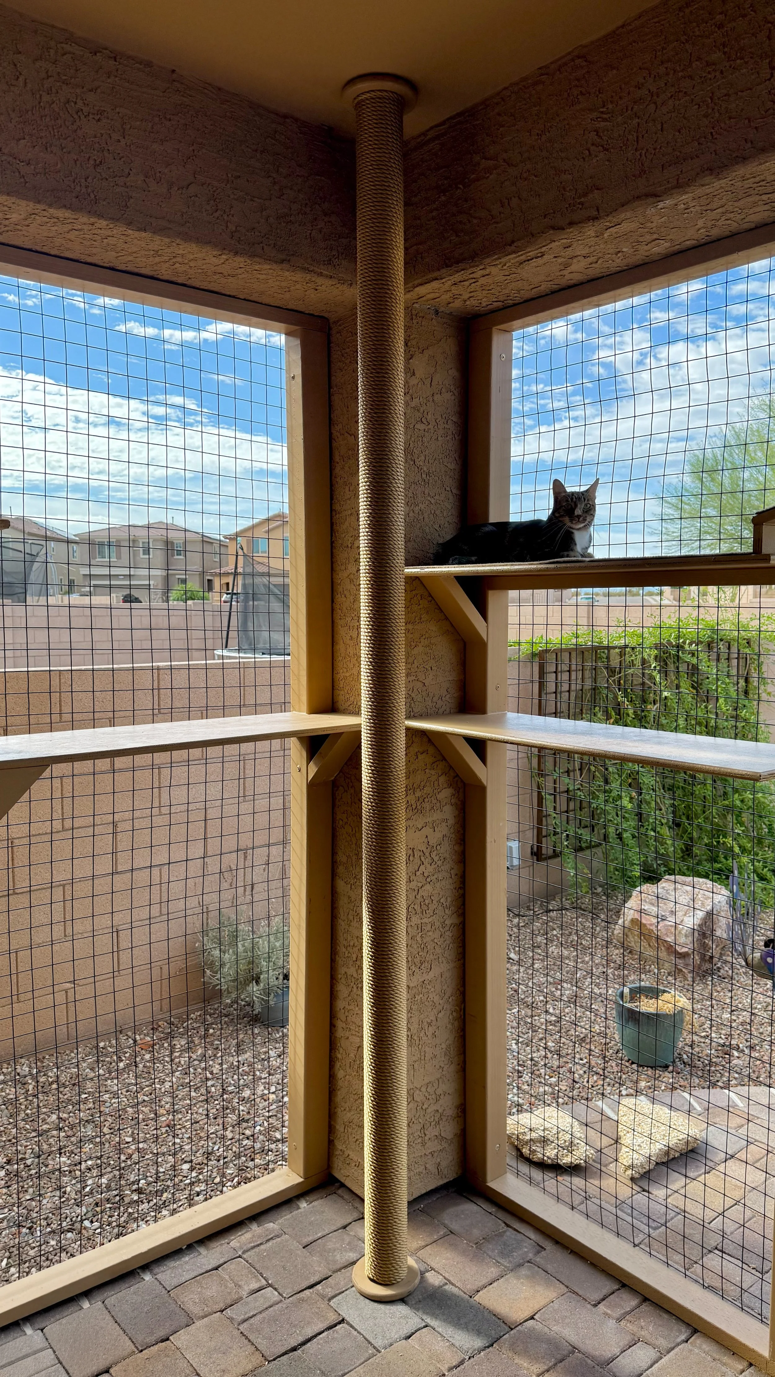 My cats and I love the new catio! Now they have a safe space without being threatened. I recommend Tailored Catios.