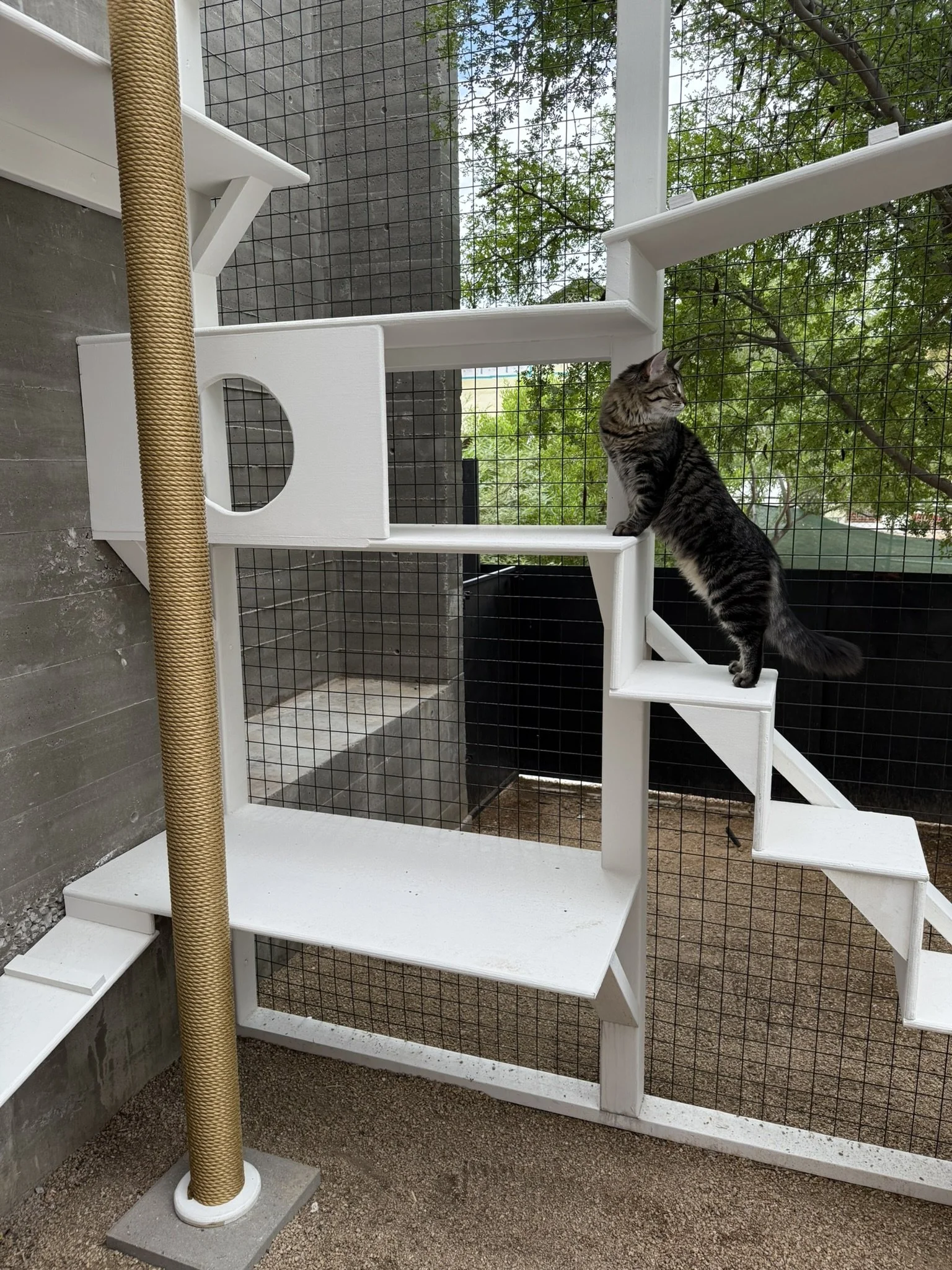 Our goal is to provide your cats with a safe and exciting environment to scratch, explore, and nap in the fresh air. Whether it's a simple perch, a climbing tower, or a fully custom design that lets your cat live their best nine lives, we’d love to help.